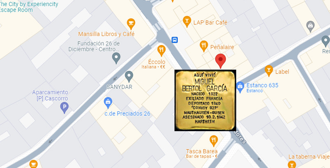 Una de las nuevas 'stolpersteine' que hay en Lavapiés-Embajadores | XLAVAPIÉS Los responsables de la rama madrileña de las ‘stolpersteine’, Isabel Martínez y Jesús Rodríguez, protagonizarán el próximo sábado 3 de mayo, a las 11 horas, una charla sobre esta iniciativa de «piedras de la memoria» puesta en marcha en Alemania por Gunter Demnig y con las que se honra en los domicilios que habitaron a aquellas personas que acabaron siendo deportadas a campos de exterminio nazi, donde muchas fueron asesinadas. La cita será en la librería Grant, calle Miguel Servet 21, y tras la charla se procederá a realizar una visita a algunas de las 19 ‘stolpersteine’ que hay colocadas en Lavapiés en las siguientes direcciones: Huerta del Bayo 4 y 5, Embajadores 23, Embajadores 4, Santa Ana 16, Santa Ana 25, Don Pedro 5, Concepción Jerónima 6, Zurita 9, Santa Isabel 17 y 41, Doctor Fourquet 20, Sombrerería 7, Argumosa 5 y 14, Ave María 43, Mesón de Paredes 60 y Carlos Arniches 17.