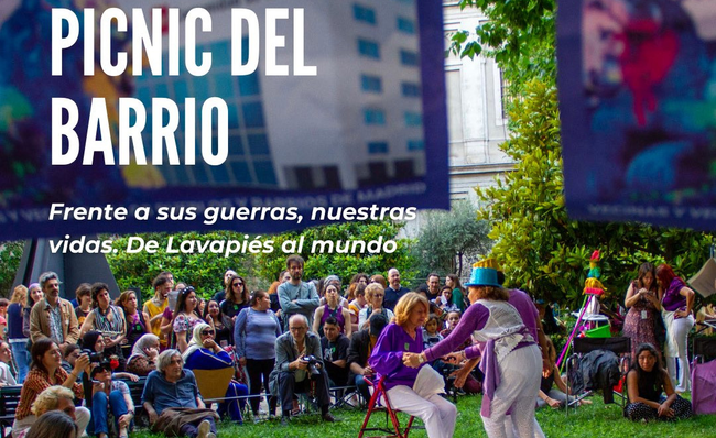 El sábado 8 de junio los colectivos de Lavapiés que forman la asamblea de Museo Situado vuelven a invitar a los vecinos y comunidades del barrio a «agujerear el Reina Sofía, a habitar sus espacios y a transformar su jardín en el Picnic del barrio, fiesta que llega a su sexta edición. Se trata de un día para encontrarse, celebrar y reivindicar las luchas, los derechos y deseos que los movilizan día a día y también para dar a conocer su actividad al resto de vecinos que quieran acercarse a este encuentro. El Picnic del barrio de este año «es un llamado a reafirmar las vidas frente a los conflictos bélicos que se extienden por todo el mundo y las violencias e injusticias sistémicas que atraviesan las distintas dimensiones de la sociedad. Así, bajo el lema Frente a sus guerras, nuestras vidas. De Lavapiés al mundo, esta jornada expresa la urgencia por volver a situar la vida en el centro de todo, reconociendo la trama de interdependencias y cuidados mutuos que permiten avanzar hacia horizontes comunes». Desde la web del Museo Reina Sofía se dice que «las reivindicaciones y campañas que reúne esta jornada se agrupan en tres ejes principales. En primer lugar, el eje Contra todas las fronteras, que denuncia las barreras físicas y simbólicas que restringen los derechos y ejercen distintas violencias, concentra iniciativas como Regularización Ya, No al Pacto Europeo de Migración y Asilo (PEMA), Contra la violencia policial en Lavapiés, Padrón sin domicilio. Empadronamiento para todas o la campaña de visibilización de las enfermedades profesionales de las trabajadoras del hogar y de cuidados. El segundo eje, Derecho a una vivienda digna para todas, recoge la defensa del barrio de Lavapiés ante la especulación inmobiliaria, la gentrificación y la turistificación acelerada que expulsa y desahucia a l+s vecin+s. Por último, Somos divers+s, orgullo LGTBIQA+constituye el tercer eje que llama a continuar visibilizando y defendiendo los derechos de las disidencias sexogenéricas que habitan, cuidan y hacen barrio, cuyas causas son un grito de libertad contra el sistema heteropatriarcal y los discursos de odio». PROGRAMA