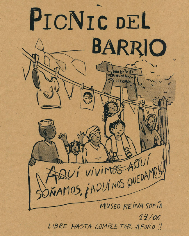 El sábado 14 de junio, la cita anual del Picnic del Barrio tomará, de nuevo, el Museo Reina Sofía. Se trata de una iniciativa que parte de la asamblea de la red Museo Situado, que reúne a distintos colectivos operativos en Lavapiés. El Picnic es, al mismo tiempo, una herramienta política y una celebración dentro del Reina Sofía, con actividades y recorridos por sus diferentes espacios.
