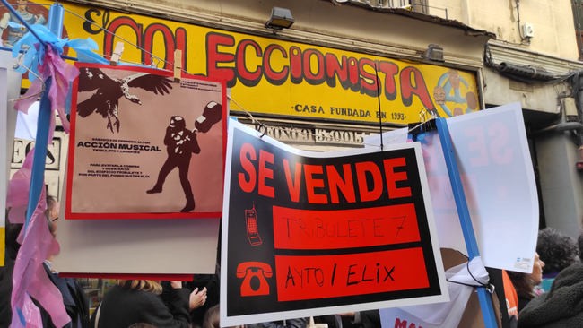 Concentración vecinal en apoyo de los vecinos de Tribulete 7 | Foto: XLAVAPIES Los inquilinos de Tribulete 7, 54 unidades familiares y dos comercios clásicos como Calzados Vinigón y Cómics El Coleccionista, han alzado la voz ante la posible situación que se les viene encima y que amenaza no solo su permanencia en el edificio que habitan sino también su estancia en un Lavapiés donde los precios de los alquileres no dejan de subir. Lo han hecho este sábado con música, a través de pequeños conciertos en algunos de sus pisos, en algunos de sus balcones y en el local de Calzados Vinigon. Resulta que un fondo buitre, Elix Rental Housing, está a punto de comprar el inmueble en el que viven, algo que podría cerrarse el próximo 13 de febrero. Si, como es de esperar, la operación se consuma, el siguiente paso de la socimi que, seguramente tiene pensado actuar de la misma forma que ya lo ha hecho en otros casos similares, sería ir comunicando a los residentes la no renovación de sus contratos de alquiler conforme estos vayan venciendo. Eso, sin negociar con los actuales inquilinos. Su objetivo, rehabilitar los pisos adquiridos y devolverlos al mercado del alquiler por un precio notablemente superior a sus rentas actuales. Entre los músicos que han querido colaborar con la acción tocando en las casas: Marina Ferrer Ensemble, Plaza 23, Andrea Sanzuela trío, Tara Lowe trío, J. Rodríguez y G. Ferrer Quinteto, Baldo Martínez Brass Band, La Jose, Los Justicieros y Piluka Aranguren. La poesía la puso, en el bajo 2, Poesía o Barbarie. El pregón de la acción corrió a cargo de la actriz Cristina Medina y de una vecina del inmueble y precedió a una interpretación conjunta del famoso Bella Ciao desde los balcones de los pisos y a otra serie de actuaciones a pie de calle, que abrió Alberto San Juan y su banda y se prolongó hasta pasadas las 17 horas con otros intérpretes como Soleá Morente, Muerdo, Pedro Herrero, Celia Bsoul, Rocío Saiz y Mane López.