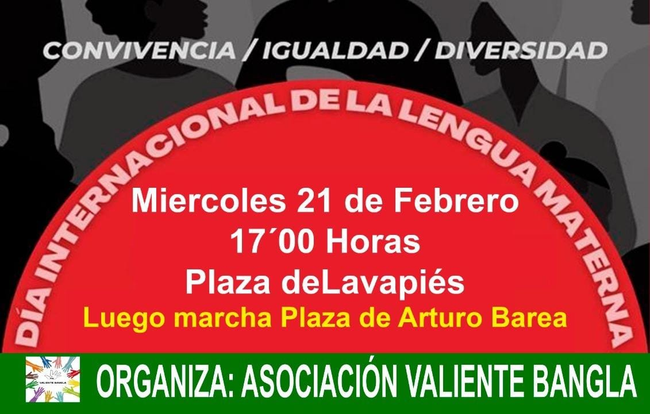 Cada 21 de febrero llega el Día Internacional de la Lengua Materna, una fecha especial para la comunidad bangladesí de Madrid, que un año más llama a los vecinos de Lavapiés a celebrarla junto a ellos, festejando «la diversidad cultural y la convivencia». La cita, organizada por la asociación Valiente Bangla, dará comienzo a las 17 horas en la plaza de Lavapiés, desde donde se partirá en pasacalles hasta la cercana plaza de Arturo Barea. El Día Internacional de la Lengua Materna fue aprobado por la Unesco en 1999 a instancias de Bangladés y persigue preservar y proteger todos los idiomas y dialectos que se hablan en el mundo. Debemos buscar su origen en los hechos que ocurrieron tal día como hoy de 1952, cuando unos estudiantes que reivindicaban la oficialidad en Pakistán de la lengua bengalí fueron asesinados a tiros por la policía durante una manifestación. En aquel tiempo el futuro Bangladés -nación independiente desde 1971- solo era una provincia cuyo territorio estaba dividido entre India y Pakistán, país que en 1947 había impuesto el urdú como única lengua del estado en 1947. Aquellos hechos dieron pie al Shohid Dibosh (Día de los Mártires), hoy referente para el reconocimiento mundial de todas las lenguas maternas. Como cada año, Valiente Bangla aprovecha este día para recordar la importancia de la existencia de cartelería en lugares municipales en las principales lenguas que se hablan y escuchan en Lavapiés, de la existencia de intérpretes de esos idiomas que puedan acompañar en trámites administrativos y en servicios de salud a vecinos con dificultades con el español y para reivindicar, una vez más, la regularización administrativa de las personas migrantes y su acceso universal a la sanidad pública, entre otras cuestiones.
