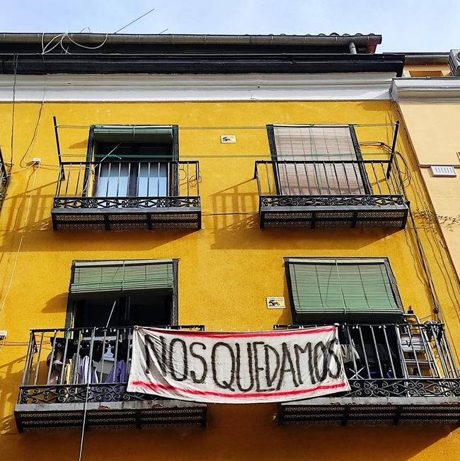 Buenavista 25 | Foto: xLavapiés Este domingo los habitantes del número 7 de la calle Tribulete volvieron a contar con el apoyo de un importante número de vecinos de Lavapiés que los acompañaron en una nueva acción de denuncia de la situación en la que se encuentran: el fondo buitre Elix Rental Housing planea comprar el edificio en el que viven en régimen de alquiler para, seguidamente, echarlos y rehabilitar el inmueble. Allí mismo, buena parte de los que acudieron al acto se enteraron de que el próximo 14 de abril el vecindario volverá a ser convocado a respaldar a otros vecinos que se encuentran en una situación similar, solo que en un estado mucho más avanzado de vulnerabilidad: los habitantes del edificio del número 22 de la calle Zurita y los del 25 de Buenavista ya están recibiendo burofaxes de su nuevo casero indicándoles que deben abandonar sus hogares cuando finalicen sus contratos de alquiler. Cuatro de esos vecinos ya han optado por marcharse pero el resto se han unido, han buscado asesoramiento en el Sindicato de Inquilinas e Inquilinos de Madrid y están dispuestos a plantar cara a la productora Gloriamundi, nueva propietaria de ambos edificios, en los que quedan 10 unidades familiares y 16 habitantes. Su deseo, según el Sindicato de Inquilinos, es iniciar una negociación colectiva «que proteja por igual a todas las personas que viven en ambos edificios». De momento, «ante la falta de respuesta de la propiedad, las inquilinas se han sumado a la campaña #NosQuedamos, que consiste en no abandonar las viviendas aunque se terminen sus contratos y resistir en sus casas hasta conseguir soluciones dignas para todas». Gloriamundi Producciones, una sociedad limitada unipersonal perteneciente a Pablo Enrique Bossi, compró los citados edificios, que se encuentran conectados por un patio interior, el pasado septiembre y, en principio, comunicaron a las personas alquiladas que sus contratos de arrendamiento seguían vigentes «en los mismos términos, con la única modificación del arrendador», proporcionándoles una nueva cuenta bancaria en la que abonar sus rentas. Sin embargo, pronto comenzaron a llegar burofaxes a las personas cuyos contratos estaban próximos a vencer. En ellos se les comunicaba la no renovación de los mismos y la obligación de abandonar sus hogares con un mes de preaviso. Para el Sindicato de Inquilinas, Gloriamundi «está empleando las mismas estrategias perversas a las que estamos acostumbradas por parte de grandes fondos buitre» y denuncia que una productora cinematográfica se haya «estrenado en el mundo de la especulación inmobiliaria«. También señalan que Gloriamundi «ha recurrido al acoso inmobiliario para forzar a las vecinas a abandonar las viviendas», acusación que refrenda Lili, una de las inquilinas de estos bloques. Según indican, la productora ha iniciado obras en dos de las viviendas que han quedado libres provocando daños estructurales en otros pisos aún habitados y que, al mismo tiempo, han dejado de mantener el edificio como es su obligación. El ejemplo más claro de ello, según la citada vecina, fue el tiempo que tardó en reparar una importante avería de agua que, una vez reparada, ha provocado zonas de moho y de abombamientos en zonas comunes e interiores de algunos pisos a las que ya no se les ha dado solución. A su vez, el Sindicato también denuncia que se ha tratado de echar a un inquilino con contrato en vigor mediante engaños, «cuando la Ley de Arrendamientos Urbanos de 2019 estipula que aún le corresponden seis años más de contrato». Cuenta Lili que, con la excepción de tres unidades familiares, los contratos del resto de inquilinos irán venciendo de aquí a septiembre pero asegura que la llegada de un burofax indicándoles la puerta de salida no quiere decir que deban dejar su vivienda en un mes, como tratan de hacerles creer. A modo de advertencia a su casero y para que lo sepan vecinos de otros edificios que puedan llegar a encontrarse en una situación parecida, esta mujer afirma que el proceso de expulsión, en caso de no llegar a un acuerdo, se puede alargar jurídicamente, al tiempo que recomienda a cualquier persona con problemas con su casero comentar la situación con sus propios vecinos para ver si es algo generalizado, unirse entre ellos si así fuera y buscar la ayuda en el Sindicato de Inquilinas e Inquilinos de Madrid. Por otra parte, los vecinos de Zurita 22 y de Buenavista 25 van a seguir el ejemplo de los de Tribulete 7 y han anunciado que pasarán a visibilizar en la calle, ante el barrio, la situación por la que atraviesan. Lo harán con una acción, aún por determinar, el próximo 14 de abril, domingo. Desde el Sindicato de Inquilinas e Inquilinos indican que distintos bloques del distrito Centro afectados por este tipo de situaciones están coordinando acciones conjuntas que «señalan a los especuladores responsables de la crisis habitacional y la turistificación de los barrios que estamos viviendo desde hace más de una década y que ha hecho que el precio medio de la vivienda en régimen de alquiler suba un 50%».