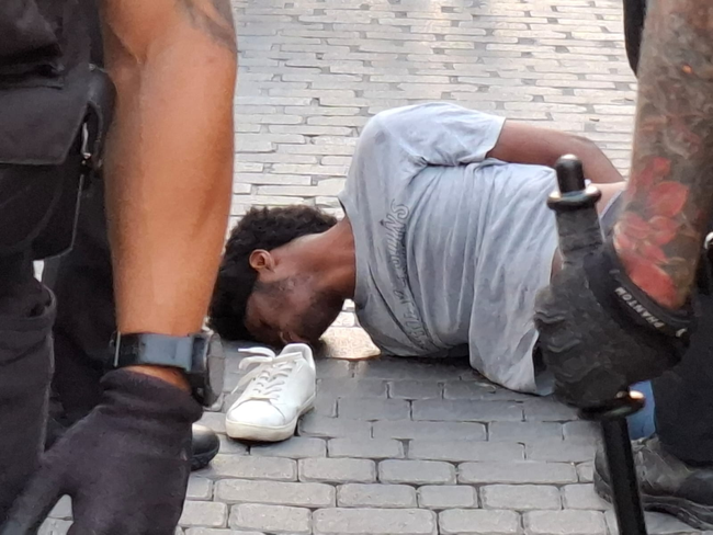 El detenido quedó inconsciente durante su detención | Foto: cedida por un vecino Entre las detenciones efectuadas el pasado miércoles en la plaza de Nelson Mandela durante una actuación policial, en la que participaron medio centenar de agentes, destacó la de una persona que sólo estaba grabando con su móvil lo que sucedía y que acabó en el suelo, esposado y sin conocimiento, después de la fuerza empleada por los policías municipales que lo inmovilizaron. Tras pasar casi un día en comisaría, esta persona, un guineano de 26 años, fue puesta en libertad anoche después de que la magistrada titular del juzgado número 6 de Madrid, actuando como Juzgado de Guardia, estimara el Habeas Corpus presentado por su defensa y declarara ilegal su detención. Para tomar esta decisión, fue clave para la magistrada la declaración del joven y, sobre todo, las múltiples fotografías y grabaciones de su detención realizadas desde distintos ángulos por testigos presenciales, tal y como queda reflejado en el auto: “Los agentes de Policía Municipal que practicaron la detención se extralimitaron en su actuar, tal y como se visualiza en las grabaciones aportadas por la defensa; imágenes que coinciden con las manifestaciones del detenido”. Además de la inmediata puesta en libertad del detenido, la jueza ordenó la apertura de un procedimiento para determinar la posible comisión de delitos por parte de los policías municipales “partícipes en la detención”. Testigos de los hechos increparon a los agentes durante esa detención al considerar que estaban cometiendo un abuso y un uso injustificado de la violencia sobre su persona. Lo que ve probado el auto judicial es una “extralimitación” en el proceder de los agentes. PARTE DE LESIONES Al quedar en libertad en la tarde de ayer, el detenido acudió al hospital porque sufría “fuertes dolores, dificultad respiratoria y limitación total de la movilidad de un brazo”, lo que requería tratamiento médico, según miembros de la Fundación Raíces, organización privada sin ánimo de lucro a la que el detenido recurrió en busca de asistencia jurídica y que tiene una relación con el joven desde que éste llegó a España, siendo menor de edad, en 2018. Aunque se encuentra relativamente bien, fue su estado el que causó preocupación durante su detención el pasado miércoles, puesto que la policía lo introdujo en un coche patrulla estando aún inconsciente. Según Carmen Ordóñez, abogada del joven: “En Fundación Raíces recibimos constantemente relatos de menores y jóvenes sobre actuaciones desproporcionadas por agentes de las Fuerzas y Cuerpos de Seguridad del Estado. Desgraciadamente no es una práctica aislada, y se dirige en mayor medida contra una parte muy concreta y vulnerable de la población, siempre bajo excusas preventivas de seguridad, pero que, en realidad, no están legitimadas”. “En este caso, gracias a ciudadanos que decidieron no mirar a otro lado mientras sucedía, se ha podido poner en evidencia, pero es necesario que nuestros sistemas de seguridad y justicia se basen en los principios de igualdad, no discriminación y respeto de los derechos humanos, y deben realizarse investigaciones exhaustivas para garantizar que así sea.” Desde la Fundación Raíces también se indica que el joven guineano goza de protección en España, donde se ha labrado un futuro y trabaja como “metre y modelo”. Lo sucedido el pasado miércoles en Nelson Mandela comenzó cuando, rondando las 21 horas, unos agentes de la Policía Nacional procedieron a identificar y a registrar a unos jóvenes junto a la fuente de Cabestreros. Al mismo tiempo, una riña en la plaza les obligó a mediar. El ambiente contra la actuación de los agentes en la zona se volvió hostil y se pidieron refuerzos, que llegaron en gran cantidad. A partir de ahí, se detuvo a un senegalés que había participado en la citada trifulca y a otras tres personas que estaban grabando imágenes: dos guineanos y un español. Según Policía Nacional, en toda la actuación cuatro agentes resultaron heridos, habiendo sufrido uno de ellos la rotura de la falange de un dedo. ABUSO POLICIAL Además de la detención declarada ilegal por la Justicia, de nuevo una grabación ciudadana delató que la policía habría cometido el mismo miércoles otra acción ilegal. En la cercana calle de Mesón de Paredes tres policías nacionales retuvieron a una persona, a la cual inmovilizaron en el suelo, y procedieron a borrar de su teléfono móvil las imágenes que consideraron oportunas y que, supuestamente, este individuo habría grabado en Nelson Mandela durante el despliegue policial. Esta acción puede ser objeto de denuncia al vulnerar tanto el derecho a la privacidad del individuo como la protección de datos. En ningún momento un policía puede actuar de esa forma. En el vídeo se aprecia, además, cómo se obliga a la persona retenida a desbloquear su dispositivo como condición necesaria para dejarlo marchar. Los dos ejemplos de proceder expuestos aportan razones a quienes llevan tiempo denunciando abuso de poder y violencia policial en algunas de las actuaciones que los agentes llevan a cabo en la zona y que para Serigne Mbaye, vecino de Lavapiés y Secretario de Antirracismo de Podemos, están agravados casi siempre por un componente racista, tal y como ha vuelto a denunciar a través de sus redes sociales con motivo de todo lo que sucedió en torno a los distintos episodios en Nelson Mandela. GRABAR A LA POLICÍA Tal y como hemos apuntado, las imágenes registradas en teléfonos móviles por particulares el pasado miércoles han sido clave para demostrar el mejorable proceder de la policía. Es por eso que no extraña que los agentes se sientan molestos cuando se les graba en el desempeño de su funciones y que, tres de las cuatro detenciones que hubo en Nelson Mandela estuvieran relacionadas con gente grabándoles. Como la ley otorga al testimonio de los 