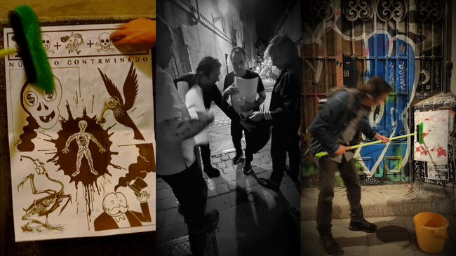 El equipo de El Cartel el martes, colocando en Lavapiés el último número de este periódico dibujado junto a otros pasados | EL CARTEL Confirmado, El Cartel está de vuelta. La ‘redacción’ de este singular periódico gráfico, nacido en 1998, se ha vuelto a reunir para despertar el proyecto de un letargo de casi una década, producir nuevos números y pegarlos en distintas paredes de Malasaña y de Lavapiés, zonas que siempre han sido su hábitat natural. Desde la noche del pasado martes se puede encontrar en algunas calles del barrio su último número, ‘Número Contaminado’, en el que radiografían la salud del planeta. Se trata del segundo número de esta nueva etapa, después del ‘Número Desgazado’ en el que criticaban el genocidio palestino en Gaza y con el que dejaron intuir su regreso. El Cartel surgió por iniciativa de los dibujantes Olaf, Mutis, Eneko y César Fernández Arias, a los que pronto se les sumaron los ilustradores Jaques Le Biscuit y Pepe Medina. Hasta 2013 sacaron con regularidad alrededor de cuatro números anuales, cerrando ciclo con la edición de un libro en el que recogieron sus primeros 50 carteles. Ahora, con la única ausencia por fallecimiento de César Fernández, El Cartel mantiene la formación de siempre. Tras su largo silencio, toparse con uno de los números de El Cartel pegado en cualquier insospechado muro será para algunos una absoluta novedad, mientras que para muchos otros, algo así como un familiar reencuentro. En su vuelta, El Cartel conserva editorialmente el espíritu crítico que lo caracteriza y, aunque por la importancia de su componente gráfico hay quien lo ha asociado más con algo artístico, sus responsables lo reivindican como medio de comunicación opinativo y marginal, una mezcla entre las viejas aleluyas, las viñetas de los diarios y los fanzines ochenteros, empaquetado en una hoja de 45 centímetros de ancho por 65 centímetros de alto. Compañero de graffitis y de intervenciones urbanas en cuanto a hacer hablar a las paredes, quienes estén interesados en seguir la pista histórica de este periódico ha de saber que puede hacerlo en internet, en la web que recoge todos sus números pasados. En ellos han abordado temas en su día de actualidad como los distintos conflictos bélicos en Kosovo, Irak y Gaza, al tiempo que otros más atemporales como los toros, la Familia Real, la iglesia, la violencia machista, el capitalismo, la vivienda o la gentrificación han sido también objeto de su escrutinio. Con la pegada de cada nuevo número, los componentes de El Cartel rescatan algunos ejemplares antiguos con temáticas aún vigentes: en su ronda por Lavapiés del pasado martes, junto al ya citado ‘Número Contaminado’ colocaron otros como el antitaurino ‘Número Indultado’ o el especial que en su día dedicaron a la defensa de la Sanidad Pública.