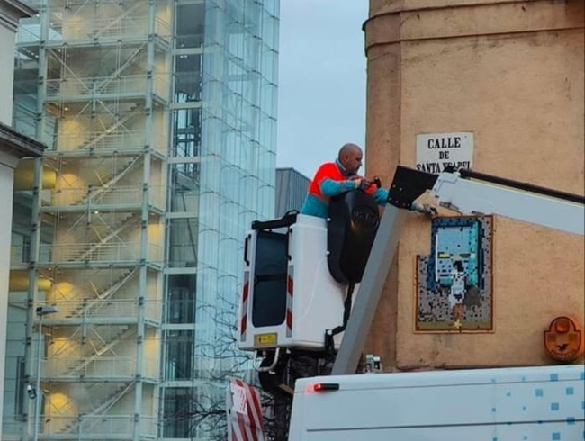 A la izquierda, operario retirando una pieza de Nean (foto cedida); a la derecha, nueva obra de Nean (foto: XLAVAPIES.COM) El artista urbano conocido como Basket of Nean, quien desde finales de febrero ha visto cómo operarios municipales de limpieza han ido retirando de las calles de Lavapiés una significativa cantidad de las alrededor de 50 piezas que tenía colocadas en ellas, ha respondido con arte y humor al supuesto golpe recibido por la destrucción de sus trabajos con una nueva intervención en la calle Primavera que bien podríamos catalogar como ‘metapieza’, arte que se mira a sí mismo. Confeccionada con sus ya clásicas teselas de colores, Nean ha creado una figura de un operario de limpieza retirando de una pared una de sus obras. Al tiempo, en sus redes sociales ha comentado esta intervención, asumiendo el papel que le toca desempeñar en el eterno juego del gato y el ratón que enfrenta a artistas urbanos con operarios municipales y policías. «Con cada pieza que dejo en la calle sólo intento cambiar la ciudad y también provocar la reacción de quienes la ven. Hace dos semanas trabajadores municipales quitaron varias piezas que había colocado hacía años. Es parte del juego del ‘street art’ y también consecuencia de lo que hago», ha dicho el artista en su cuenta de la red social instagram, donde también se muestra satisfecho de que el hecho de que muchas de sus obras se hayan retirado de las calles haya abierto un debate sobre si se debe o no preservar el arte urbano, cuestión que se han estado preguntando estos días muchas de las personas que han notado la falta de las teselas de Nean en su vida cotidiana. El artista cierra la publicación en instagram a la que hemos hecho referencia, expresando un deseo que vendría a completar su nueva obra: «Sólo quiero una foto o un vídeo de un operario municipal quitando mi pieza del operario municipal de la calle». Las obras de Nean no han sido las únicas que han desaparecido de los muros de Lavapiés en las últimas semanas, si bien sí son las más significativas por haberse convertido en una especie de objetivo para las brigadas de limpieza y también por ser de las más reconocibles y bien recibidas por los viandantes. Según las responsables de la galería especializada en arte urbano La Panartería, también han desaparecido piezas de artistas como Ferrol Mola, Soga 303, Wolf, Paquito, Take The Topo, Muso, Isaac Cordal, Hugo Flores, Inopia o Dante Arcade. El número de pérdidas podría rondar las 70.