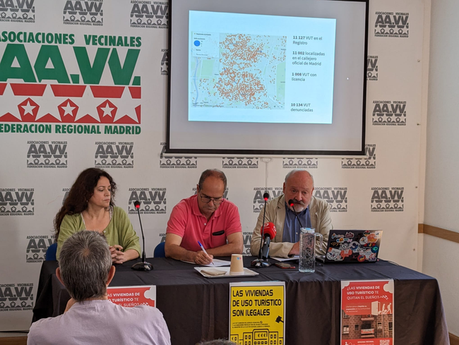 Víctor Rey, de la asociación Sol y Letras | @fravm_madrid Se estrena en el número 38 de la calle de Lavapiés, local de la asociación La Corrala, la Oficina de Información Vecinal de Afectados por las Viviendas de Uso Turístico, que atenderá presencialmente todos los jueves, entre las 18:00 y las 20:30 horas, a quien necesite de sus servicios, y que estará también abierta siempre online a través del correo electrónico oficinaafectadosvits@gmail.com La Oficina asesorará sobre las acciones que pueden tomar vecinos y comunidades de propietarios ante la proliferación de pisos turísticos ubicados en sus inmuebles y barrios y que, en su inmensa mayoría (95%) son ilegales. Para ello, ha elaborado una batería de recomendaciones y varios modelos de escritos de queja y demanda para ser presentadas ante diferentes organismos con competencias en la materia, como la Agencia de Actividades del Ayuntamiento de Madrid (ADA) o la Dirección General de Turismo de la Comunidad de Madrid. Detrás de esta iniciativa están las asociaciones vecinales La Corrala de Lavapiés, Sol y Barrio de Las Letras, Las Cavas-La Latina, Retiro Norte y El Organillo de Chamberí, con el apoyo de su federación autonómica, la FRAVM.«Tanto la Administración regional como el Gobierno local que dirige Martínez-Almeida prefieren mirar hacia otro lado y dejar que las empresas que gestionan las VUT sigan enriqueciéndose, aunque deterioren la convivencia en nuestros barrios, que defender los derechos de la vecindad residente», denuncian en un comunicado desde la FRAVM. INFORMACIÓN A LAS COMUNIDADES DE PROPIETARIOS