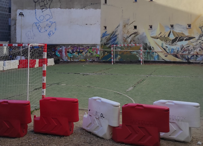 Obras en Embajadores 18: nueva pista deportiva, vestuarios y zona estancial, entre otras mejoras