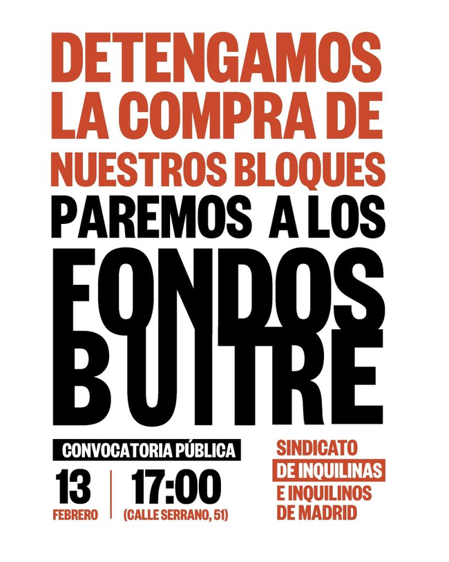 Así, la portavoz de Más Madrid ha dicho que el «fondo buitre» pretende «empezar con la práctica mafiosa habitual en este tipo de casos»: «Primero comprar el edificio, subir los precios, expulsar a los vecinos, y convertir lo que son casas de familias en apartamentos turísticos o en viviendas de lujo para unos pocos». «Este caso va creciendo a lo largo de las últimas semanas».