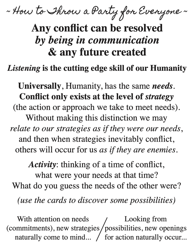 The activity utilizes the needs cards from a deck of Grok cards (now available online) - no relation to the chatbot introduced in 2023, but instead a reference to Robert Heinlein's coinage in 1961)