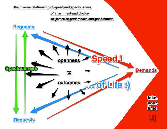 A sketch inspired by Jean's commenting that a faster pace of life contributes to less access to choice and inclination to demands. From today's Festival of Compassion - An NVC 'Key Distinction': Needs & Strategies