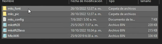 Archivos Firmware TFT de la página de Artillery