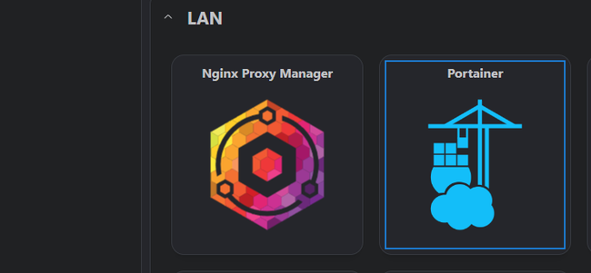 Icono Portainer dentro de un dashboard de Homar