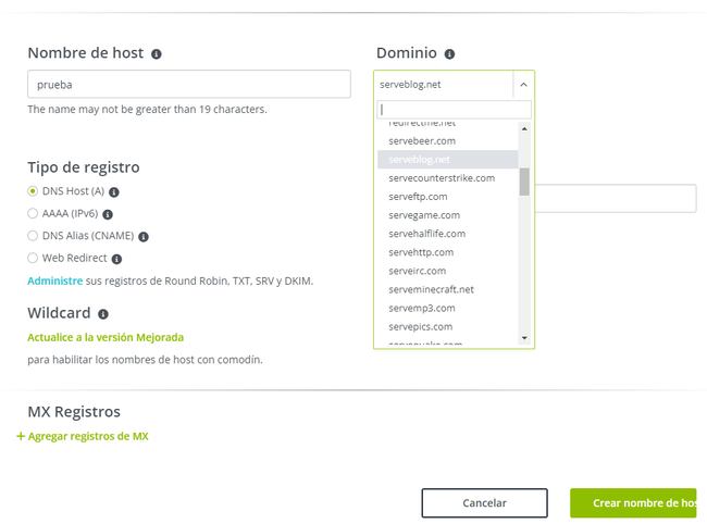 Crear nombre host en noip
