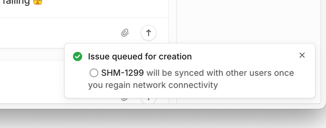 Issue queued for creation. It will be synced with the other users once you regain network connectivity!