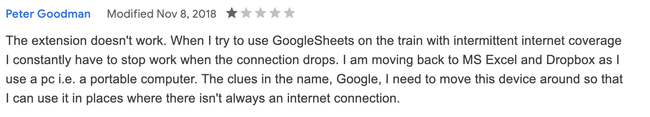 The user experience with offline work is splendid.