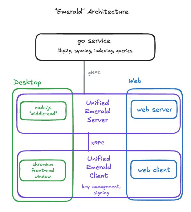 As an overall result, we have a lot of functionality that needs to be re-implemented in different environments and languages. This bloats the amount of code that we have to write and maintain. This also means that a feature will land to the desktop app at a different time as it lands for web. Concise code allows developers to efficiently iterate on the product before PMF. The more code we have, the more bugs we have.
