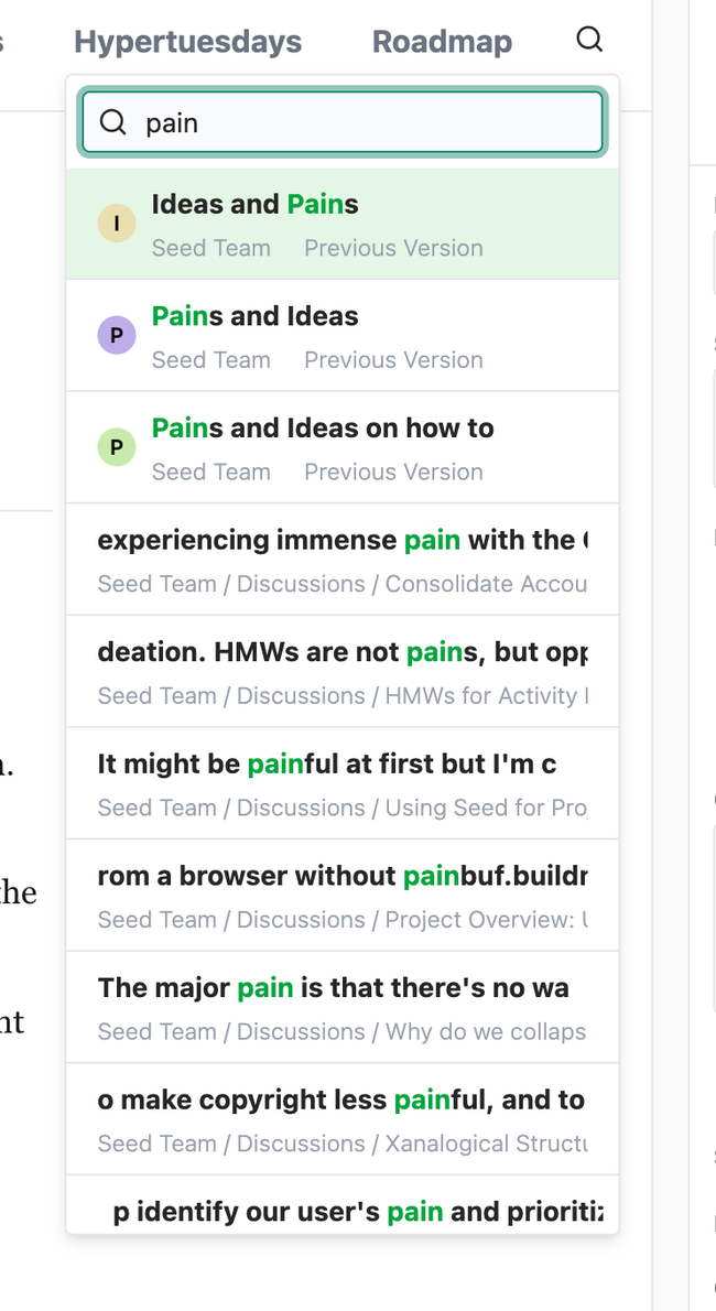 We should automatically send users to the latest version that includes the keyword. Once the user lands on the document, the user will have enough context navigating the version panel.