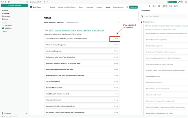 My library is trying to tell me that a comment recently happened in "Notes" but I have no way to see what it is.