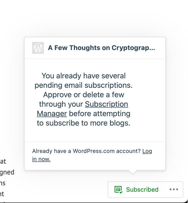 So, you do get a wordpress.com implicitly after you confirm the subscription, but it's not getting in the way too much.