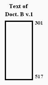 Now along comes a second author Barker, who publishes document B, version 1. The text contents of document B v.1 are registered as 217 consecutive bytes with permanent addresses 301 to 517, also an unbroken stretch of content bytes.