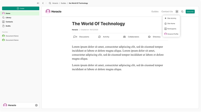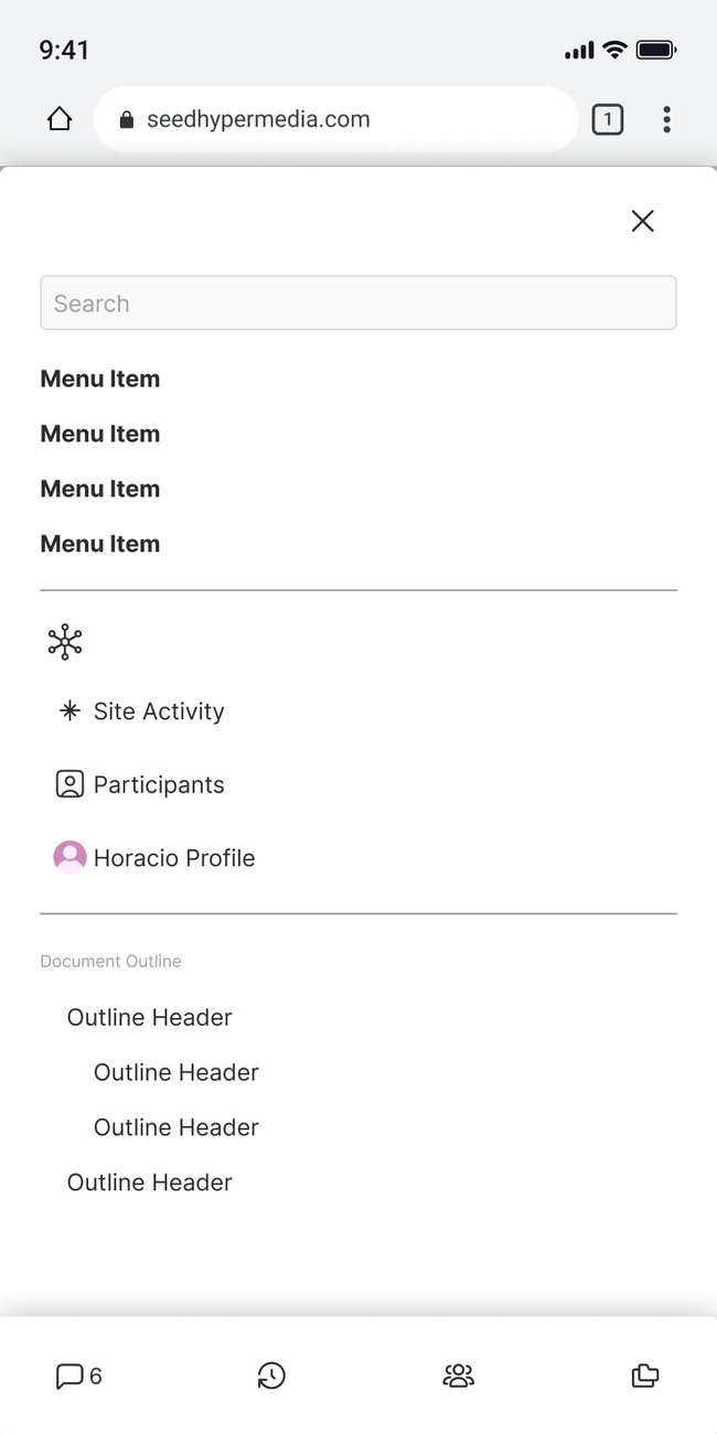 The navigation between this identities will be done though the site navigation at the top bar and in the hamburger menu on mobile.