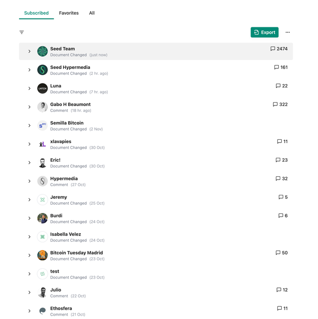 This document looks to answer to the following user story> If we want a way for users to be able to see all the activity for the documents they have subscribed to as well as the communities they belong to, the best thing we can do is adopt the feature of a home feed/ for "For You Page" that many social media platforms like: X, Medium, Substack amongst many other use to keep their users up to date with general information of what's happening. The feed needs to incorporate both information for the node as well as information form all subscribed sites. To start it would be ideal to have document related information (document creation and document updates) as well as information on discussions (new discussions and replies). Proposed design look The look for the design was inspired form Substack which uses a combination of document posts in the feed with discussion posts of a sort. Take in mind that this was adjusted to takin into account the needs and stories relevant to Seed users. Substack Replies Threading and Commenting on The Feed Clicking a thread will also open up the threaded discussion similar to how X does it. It will open the thread depending on where you want to reply.