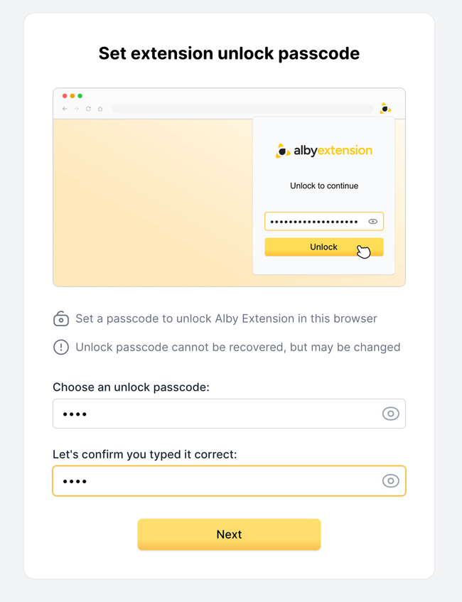 Unlock passcode cannot be recovered, but may be changed.