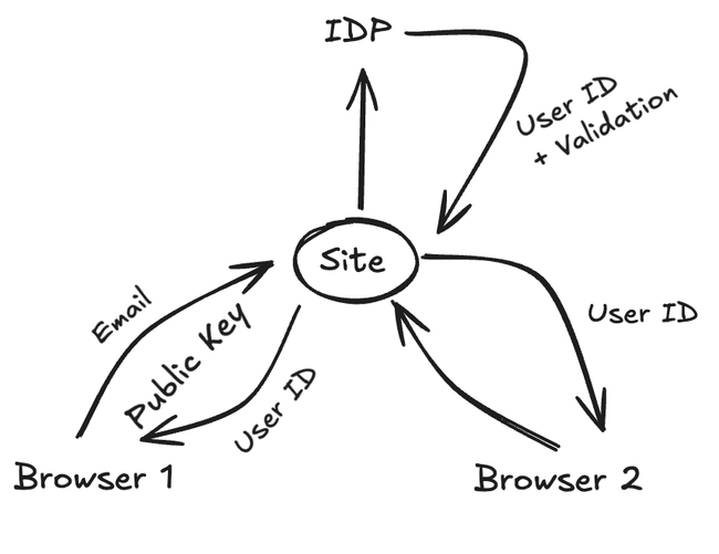 User can add or lose as devices as needed. The Service Server will add the new Session Keys to its UserID, after validating the user with an email magic link or a Passkey.