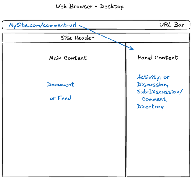 There will be a visual highlight around either the main content or the panel, which matches the URL in the URL bar