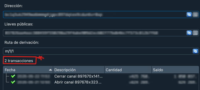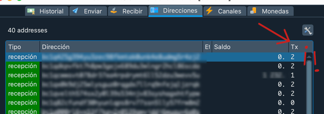 En la columna de la derecha el número de Transacciones en las que una dirección ha intervenido.